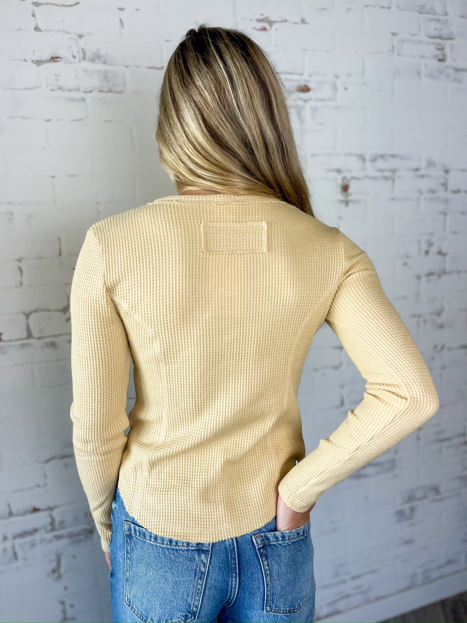 Soft, stretchy, and endlessly versatile—this waffle knit top is an everyday essential. With snap-front detail and a flattering scoop neck, it’s perfect on its own or layered under your favorite jackets and cardis.