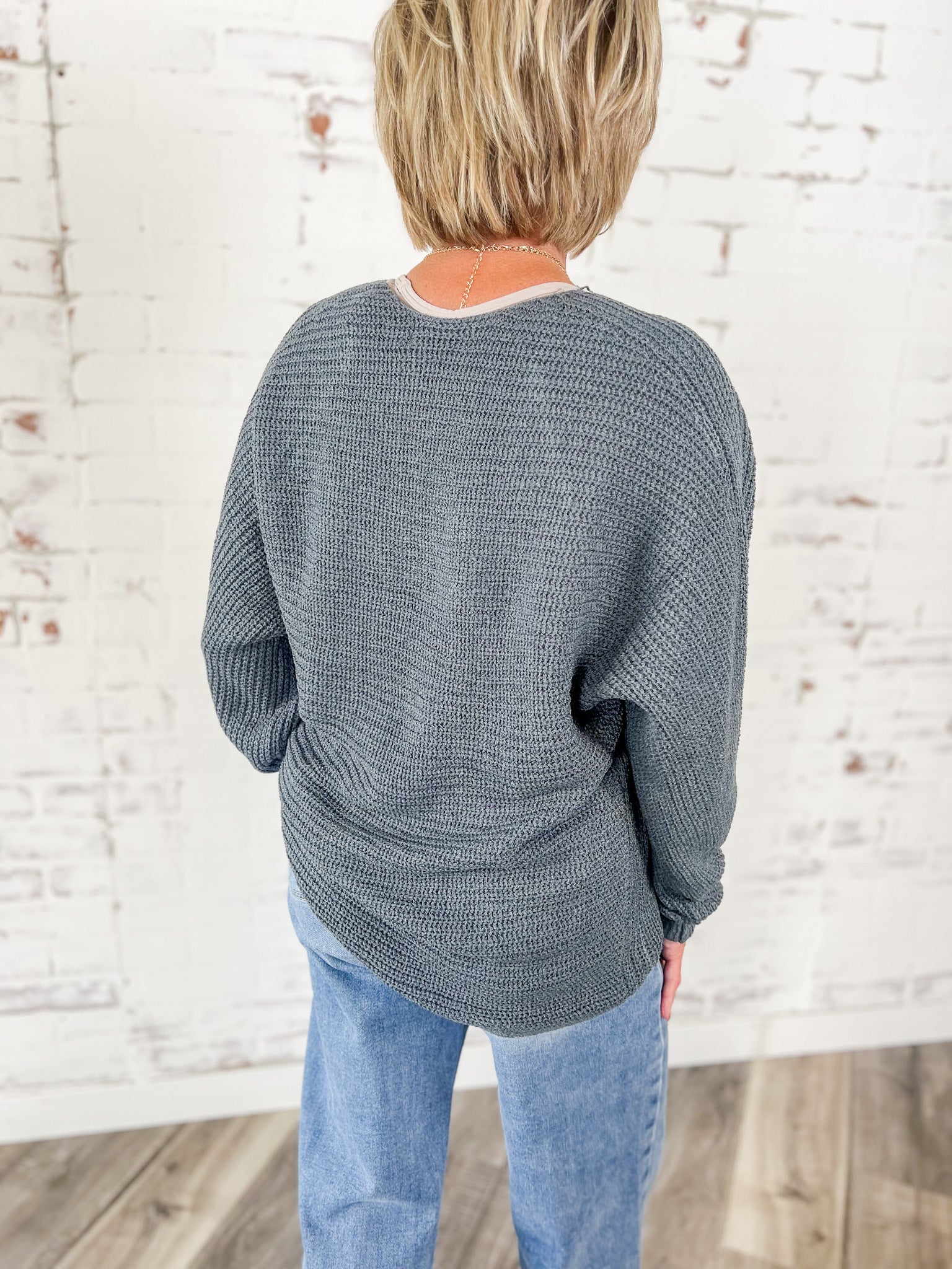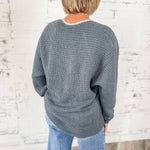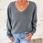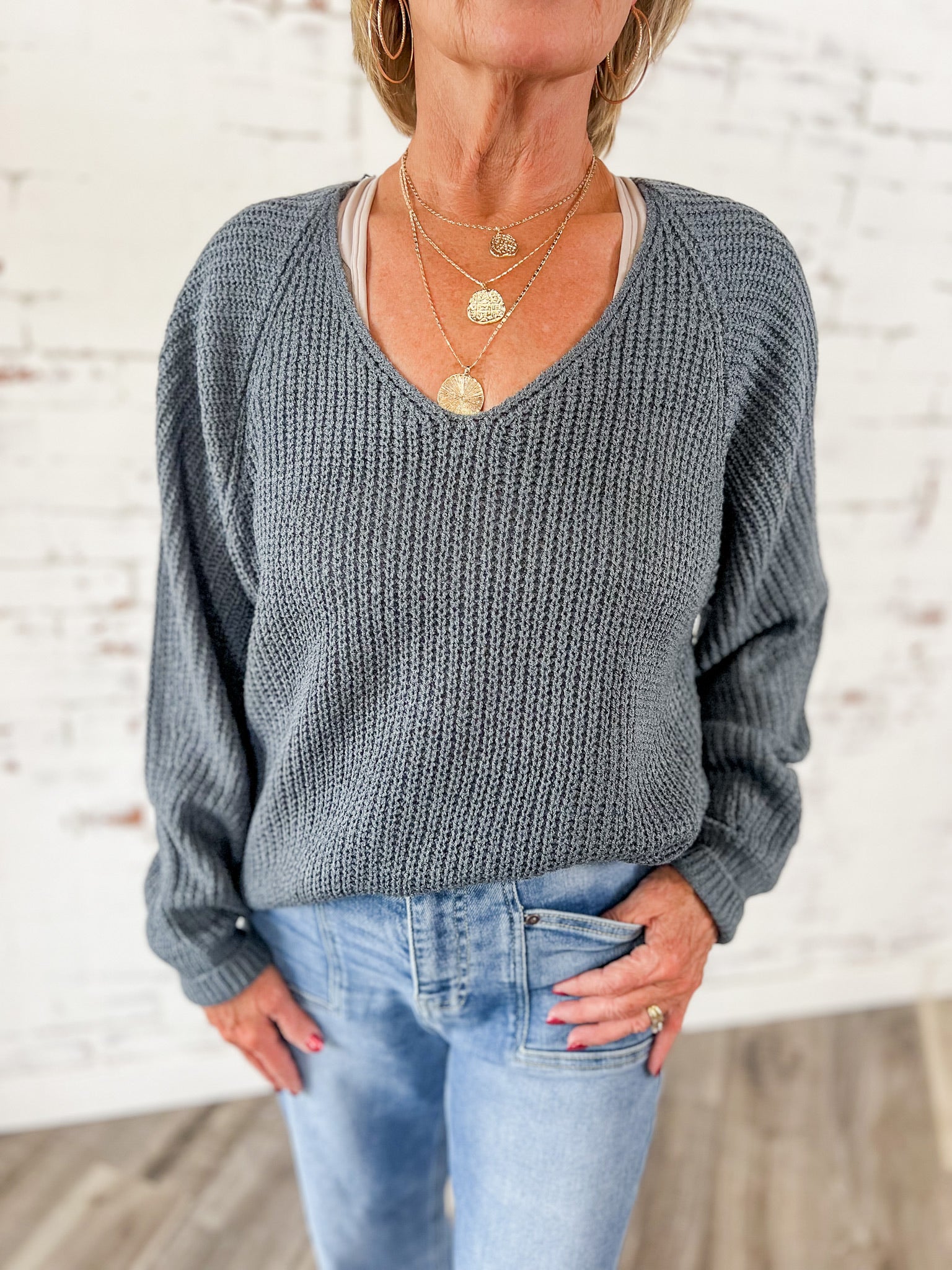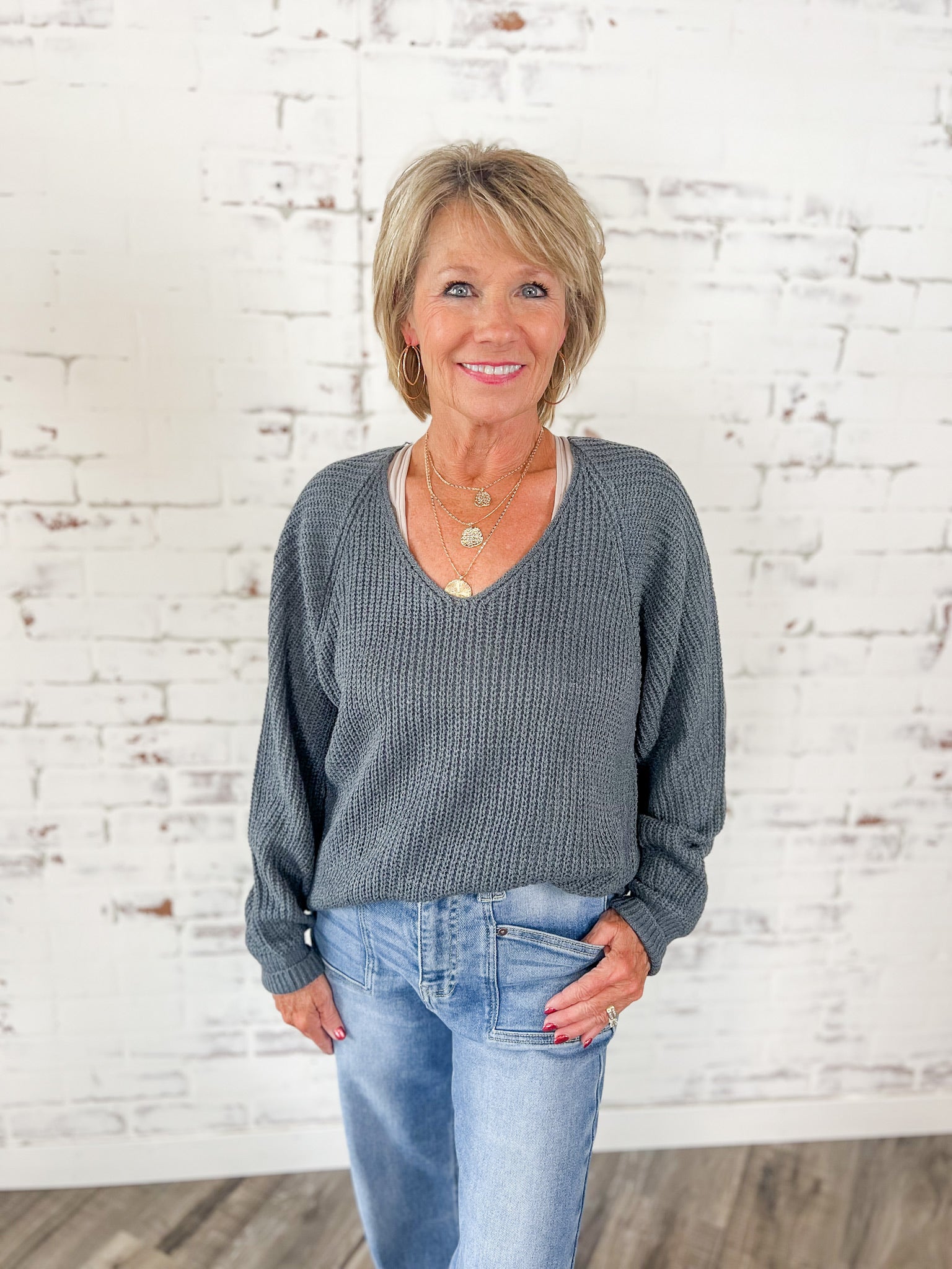 Classic comfort, modern texture. This waffle-knit sweater is the perfect mix of cozy and chic, featuring a relaxed fit and flattering v-neckline. Pair it with denim and gold jewelry for an effortlessly put-together look.