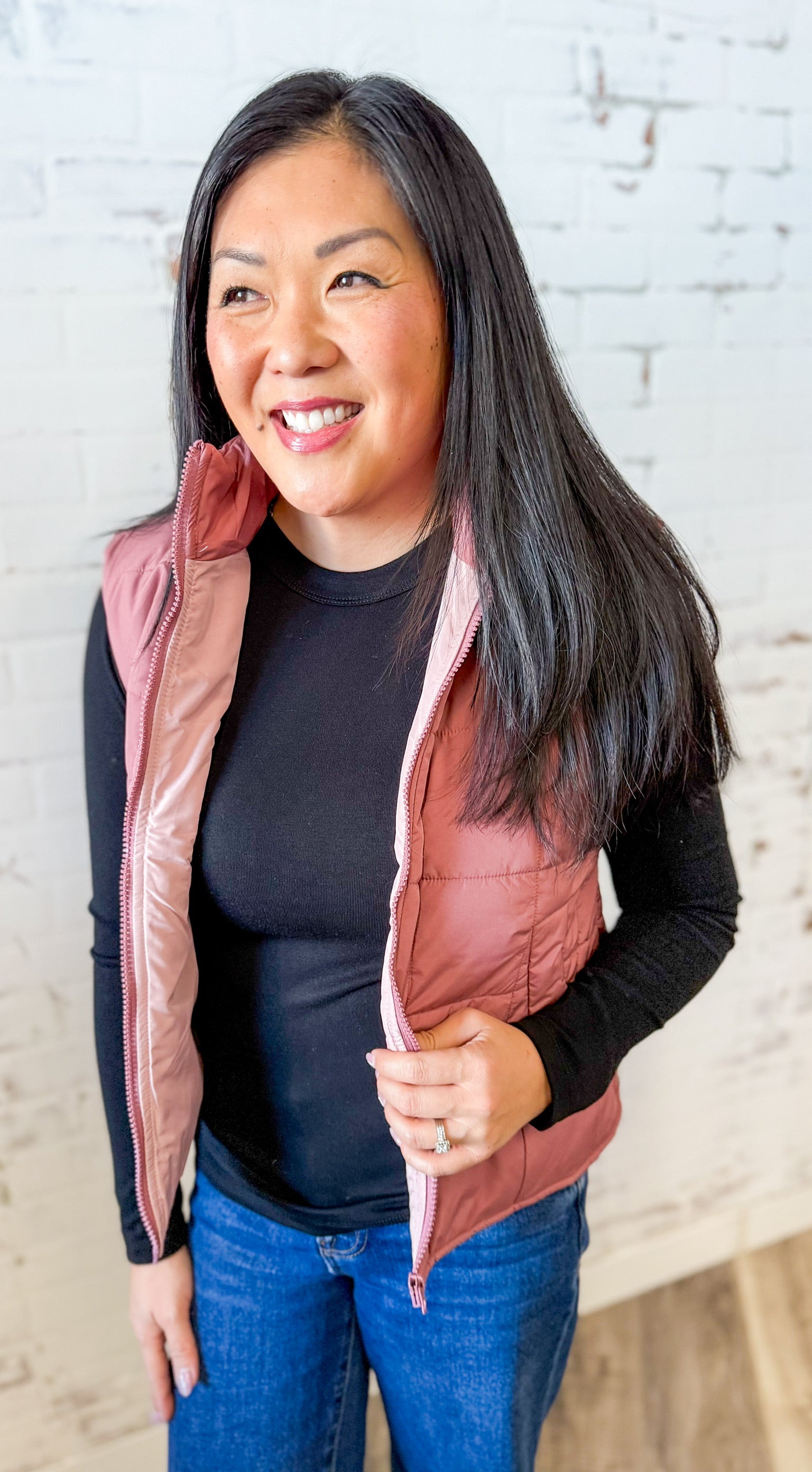 Your wear-with-everything vest for chilly days and mom-on-the-go moments. Lightweight, cozy and quilted for just the right amount of warmth without the bulk.