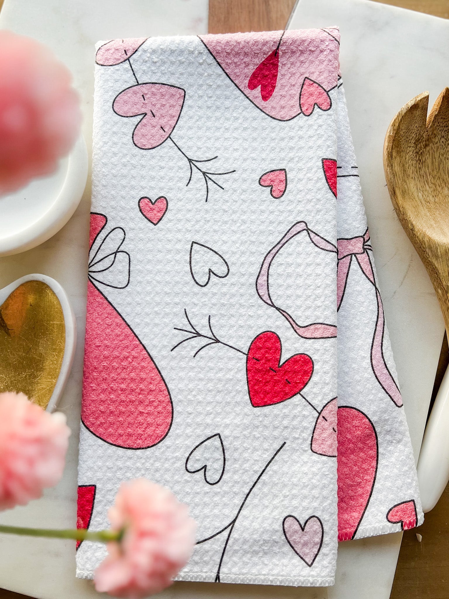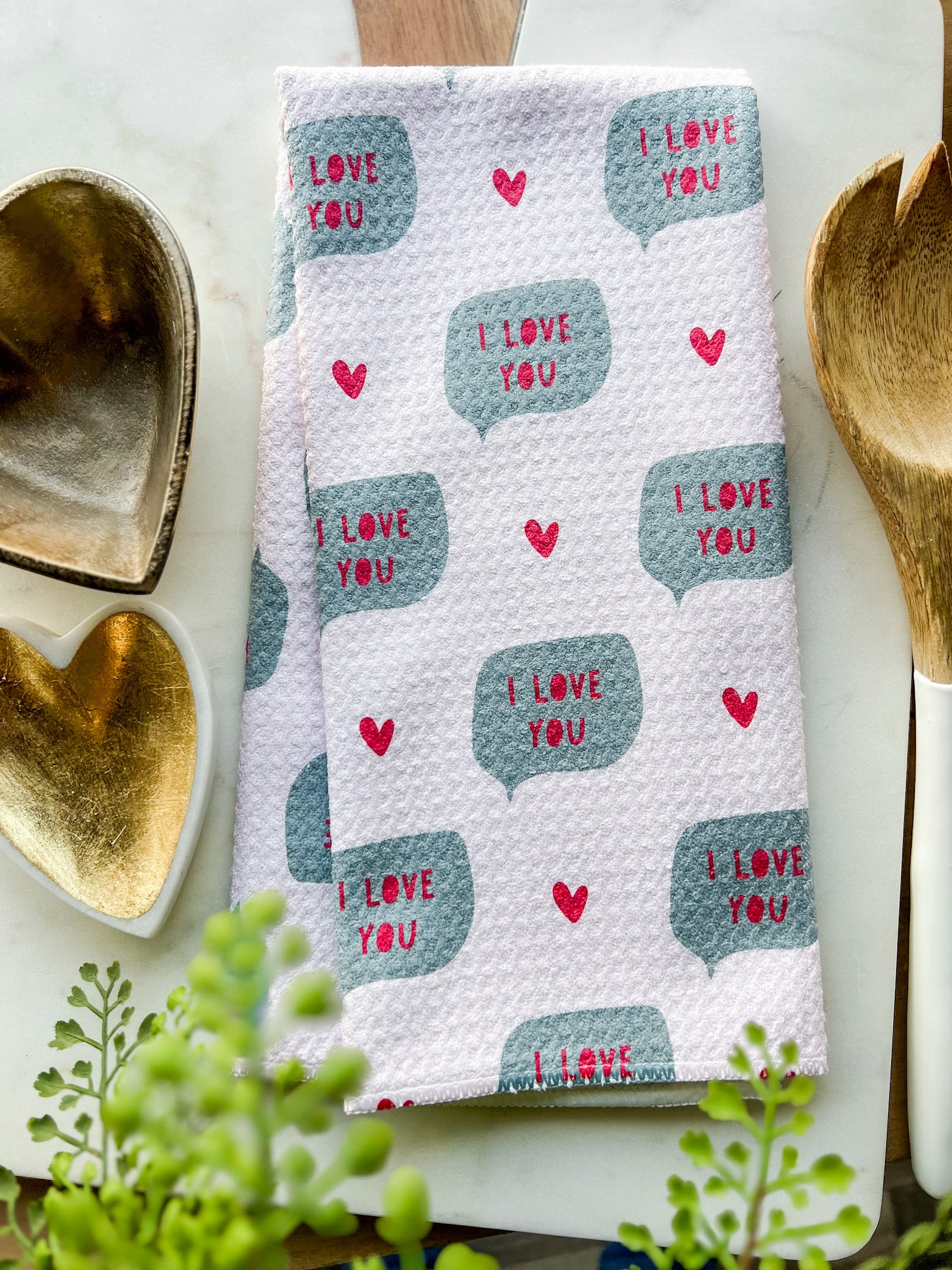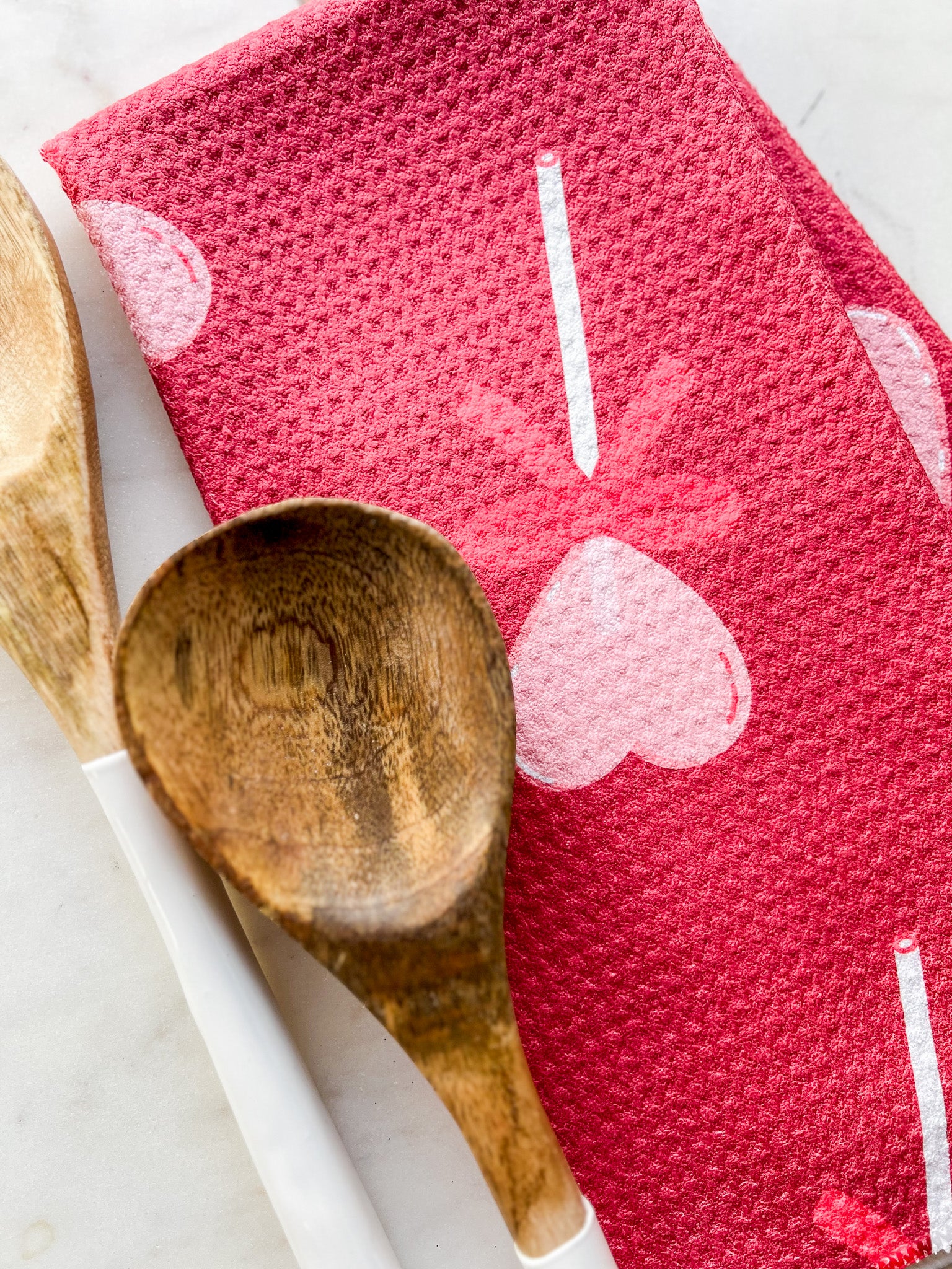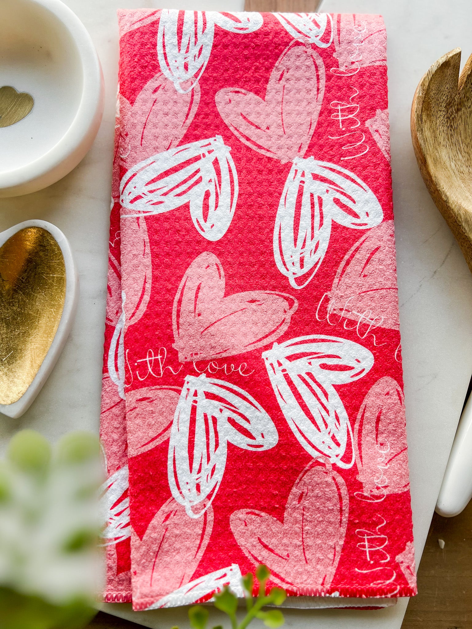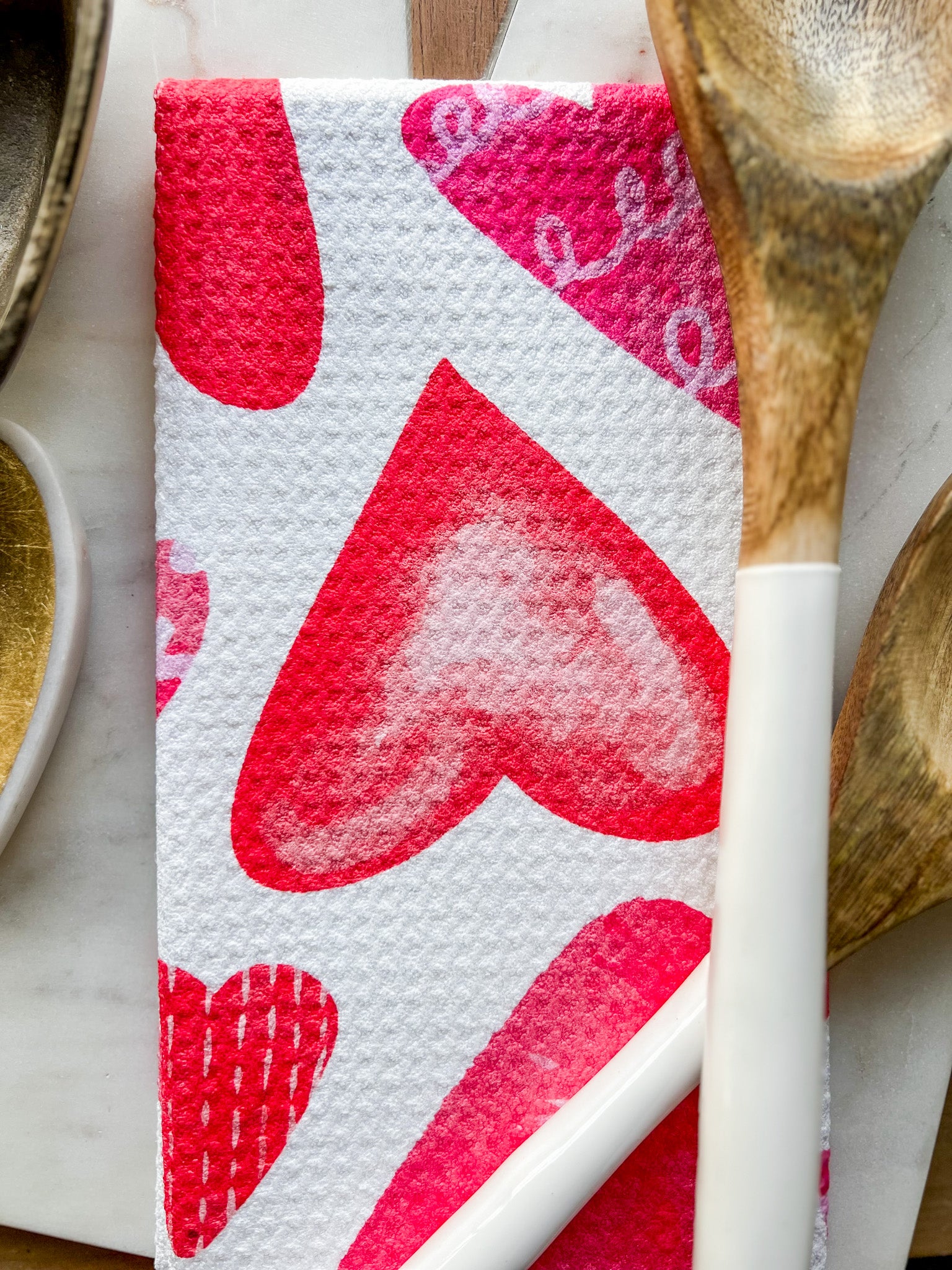 This love-filled waffle weave tea towel is the perfect touch for Valentine decor, Galentine gifting or a thoughtful hostess moment. Pretty enough to display and hardworking enough for everyday kitchen messes.