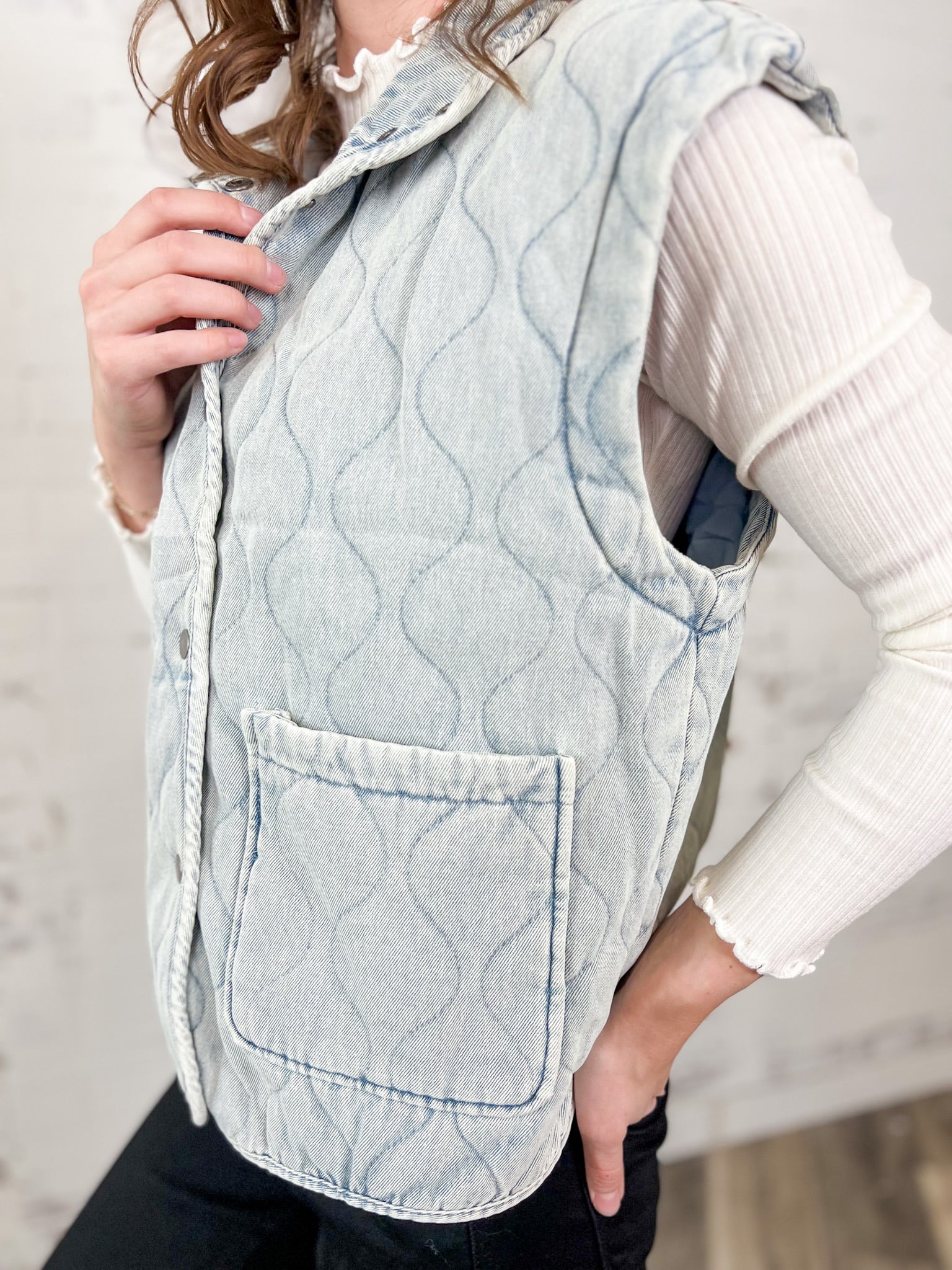 The Wavy Wonder Quilted Denim Vest