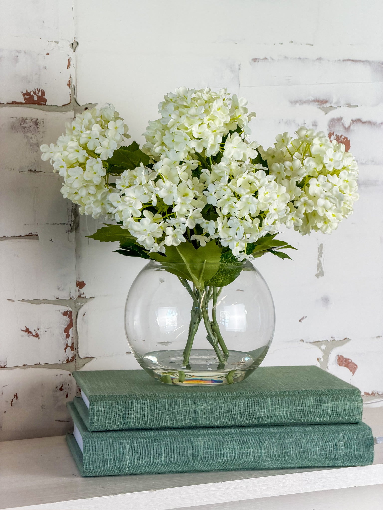 This faux floral arrangement offers an effortlessly styled look with lifelike stems set in clear acrylic gel for a clean, water-like finish. It’s an easy, no-maintenance way to add softness and dimension to shelves, consoles or tabletops, already perfectly arranged and ready to display straight out of the box.