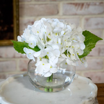 Fresh and timeless, this 8" faux white hydrangea arrangement brings effortless beauty to coffee tables, kitchen islands and bedside styling. The full hydrangea bloom paired with a clear glass vase creates a clean, classic look that works in every season.