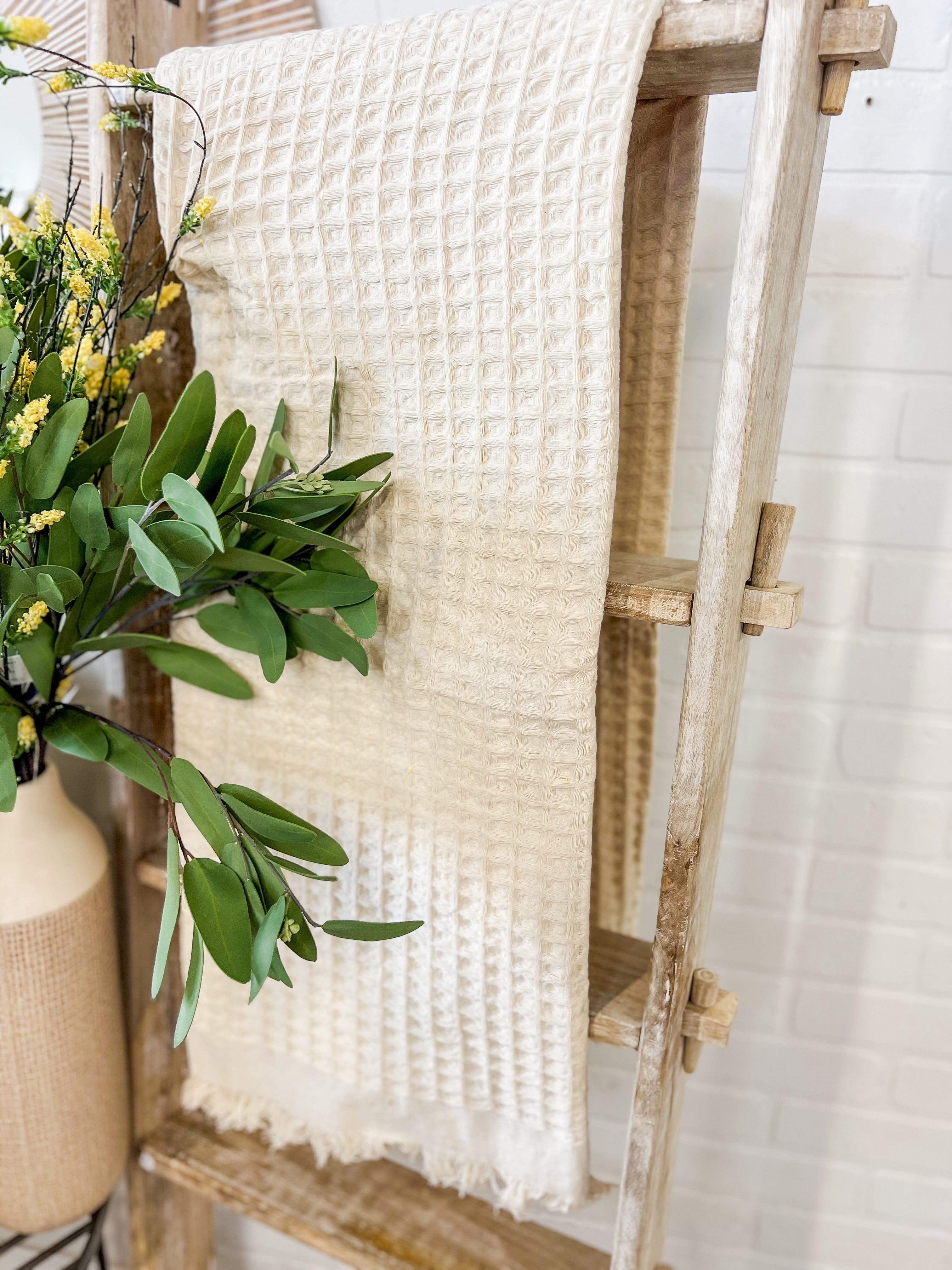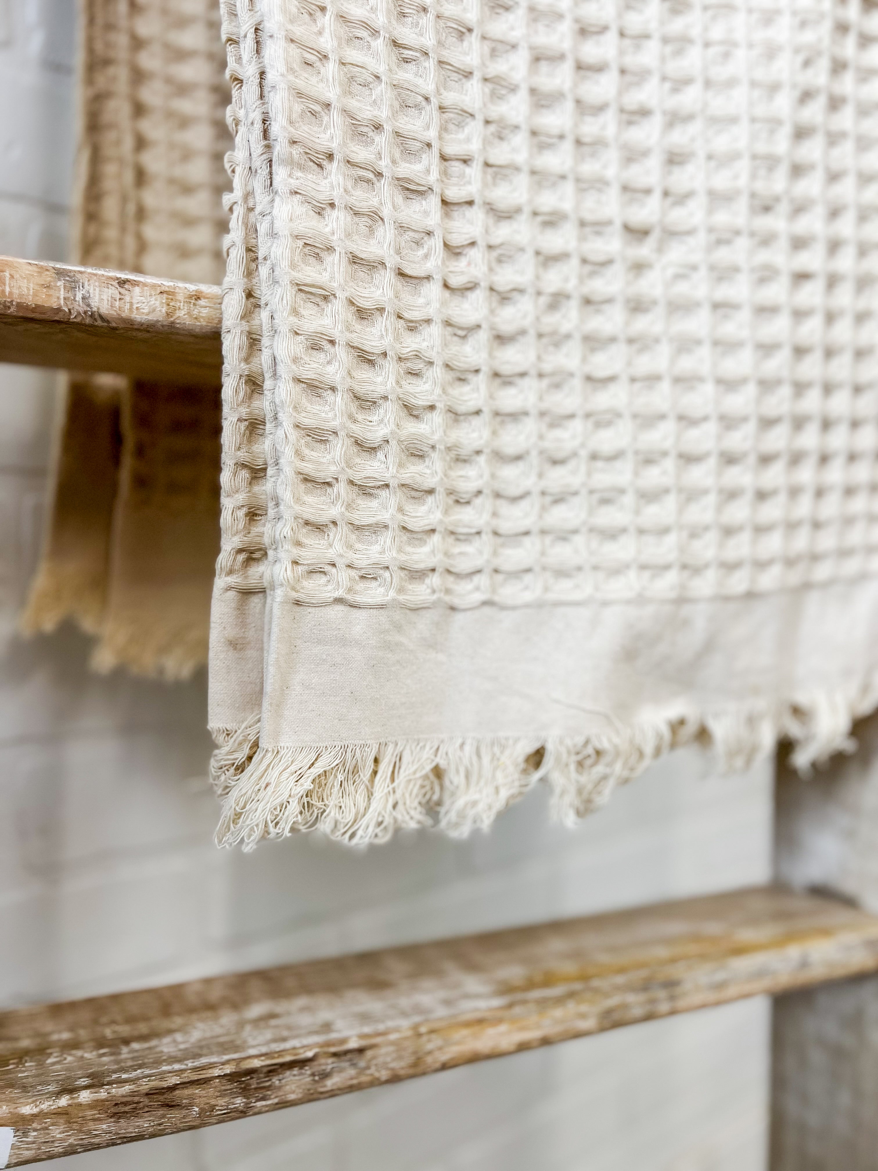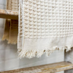 Cream Waffle Fringe Throw