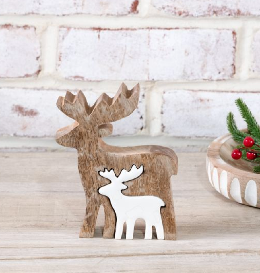 5" Wood Deer With Inner Deer