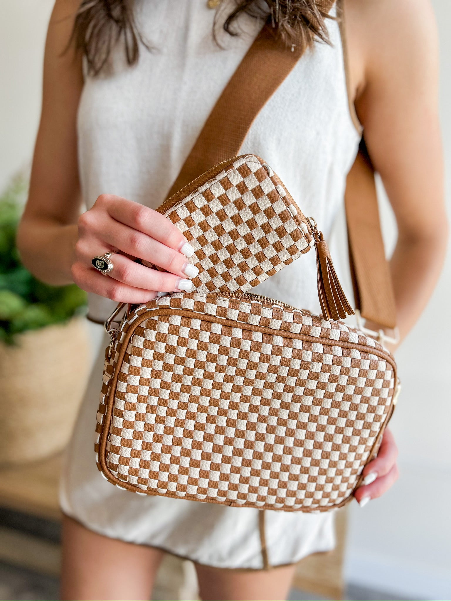 Small but mighty! This tan + white woven wallet is the perfect grab-and-go piece. Pair it with the matching crossbody or toss it in your tote—either way, it’s a whole vibe.