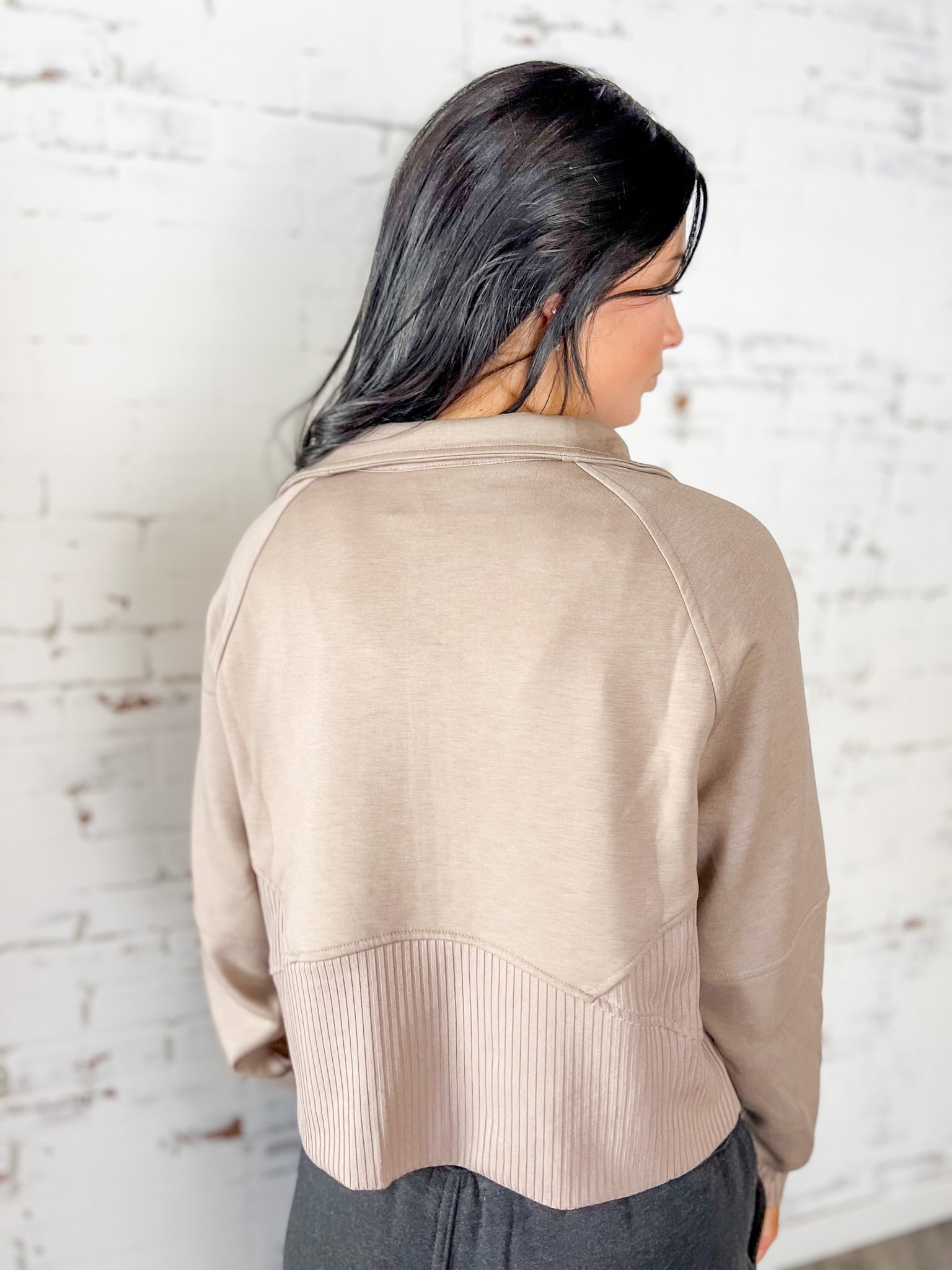 This jacket is the definition of easy polish. Soft, stretchy and lightweight, it’s the perfect layer for running errands, travel days or casual nights out. The clean zip front and subtle ribbed texture make it feel elevated while still being incredibly comfortable.